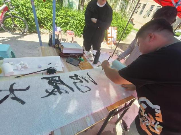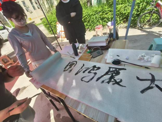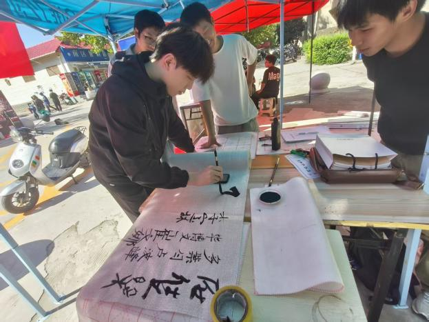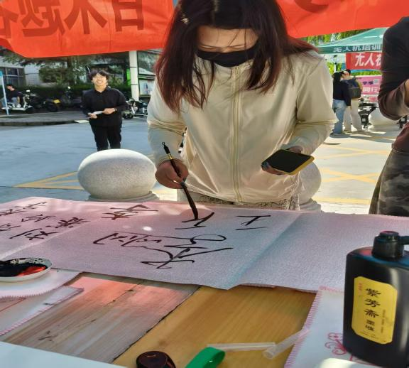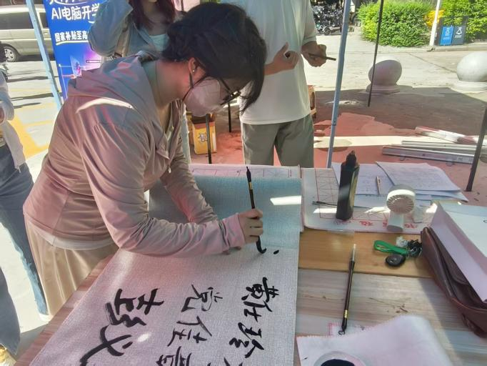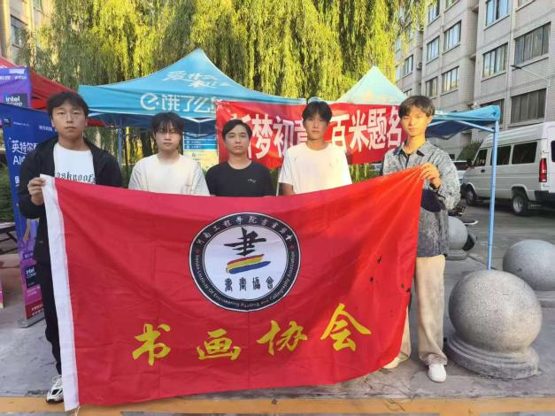 9月24日,“新梦初章,百米题名”书画活动在南区龙源餐厅附近举行,参与者在百米长卷进行不同风格书写签名。