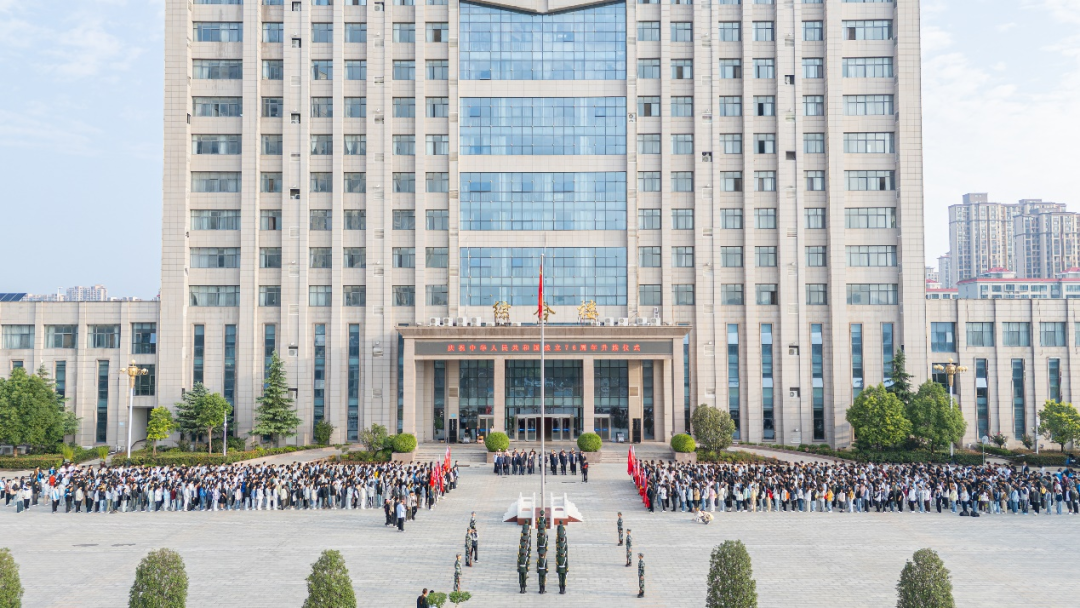 9月29日清晨,我校“庆祝新中国成立76周年,凝聚力量谱写发展新篇章”主题升旗仪式在龙湖校区举行。校党委书记解伟出席并讲话。学校各相关职能部门负责人,龙湖校区各学院书记、副书记、分团委书记、新生辅导员及学生代表近1000人参加。仪式由党委副书记赵红亮主持。