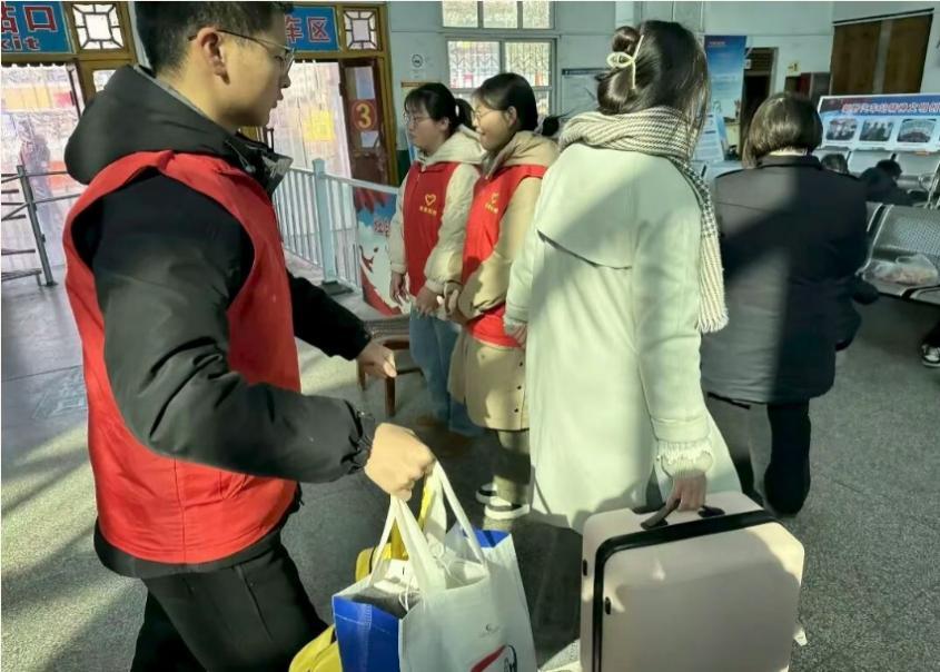 商学院学子吕佳谊在春运高峰期投身“暖冬行动”春运志愿服务一线,为旅客指引路线、协助维护现场秩序,有效缓解客运压力。针对老弱病残孕等特殊旅客,相关志愿者提供搬运行李、协助购票、护送上车等“一站式”贴心服务,保障特殊群体平安、便捷出行。
