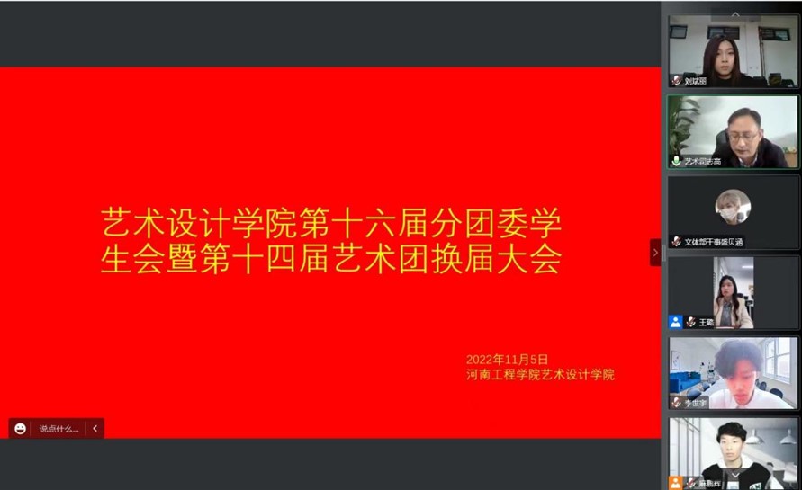 11月5日下午,学院线上召开第十六届分团委学生会暨第十四届艺术团换届大会,全体团学干部、学工人员参加会议,会议由十六届分团委副书记麻鹏辉主持。