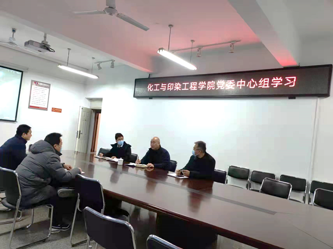 12月31日下午,化工与印染工程学院在办公楼506召开党委中心组学习会议,学院党委中心组成员参加会议。会议由学院党委副书记郑汝东主持。