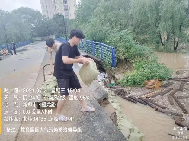 曹国庆,计算机学院计算机科学与技术1942班班长,共青团员,2021年7月20日,持续两天的暴雨过后,见朋友圈都在转发灾情之严重,曹国庆当晚便和身边同学一拍即合要去防汛志愿服务,在新郑市教育园区管理委员会工作人员的帮助下,得知罗垌水库有险情,急需志愿者,他们便迅速赶了过去。