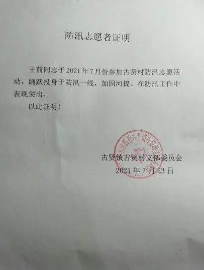 康峰彪,商学院工商企业管理2031班,在了解到巩义灾情后康峰彪果断报名加入防汛救灾志愿服务队,与数百名志愿者一起前往巩义受灾严重的小关镇,参与救援工作。康峰彪所在的志愿者小队被指派到各个地方负责装卸物资和清理道路。他们争分夺秒,积极参志愿工作。