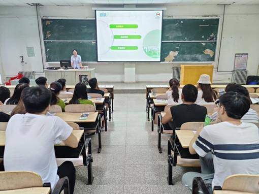 姚经理通过播放企业宣传片,向在场学生展示了企业的发展概况及发展理念。紧接着,姚经理借助PPT详细介绍了集团概况、集团管理、文化建设、人员需求以及职业发展方向等。宣讲过程中,姚经理积极与在场学生进行交流互动,每一环节结束后都会提问问题,并将自己公司的产品作为奖品。姚经理热情邀请在场学生提出自己的疑问,学生的侧重点不尽相同,工资、工作地点、休假制度、晋升渠道、五险一金均在考虑之列。姚经理表示在招聘时,积极向上的精神风貌、谦虚谨慎的求职态度、不卑不亢的谈吐是他们所认为求职者应具备的最基本的素质。最后,姚经理诚挚邀请在场学生加入该企业。