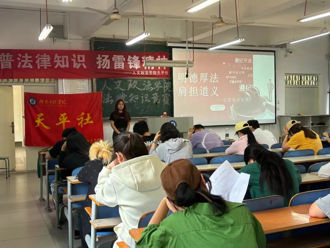 为进一步提升学生法治观念和法律素养,强化自觉守法意识,人文政法学院于4月17日在7A101教室举办“学法知法守法,成长成人成才”法律知识竞赛。