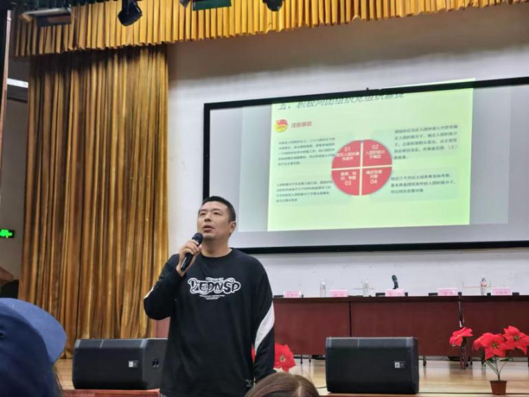 随后,丁雪龙则系统且深入地补充讲解了入团入党流程及做法,从入团的积极分子培养、推优,到入党的申请、考察、发展等各个环节,都进行了细致说明,还结合实际案例分享了在政治追求道路上的注意要点,为学生的政治发展提供了全面且清晰的指导。