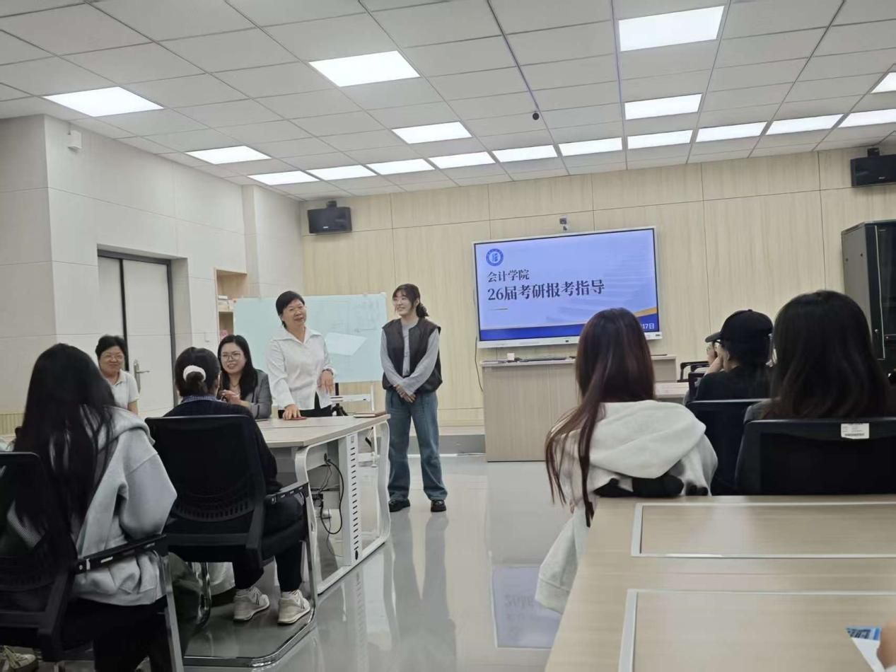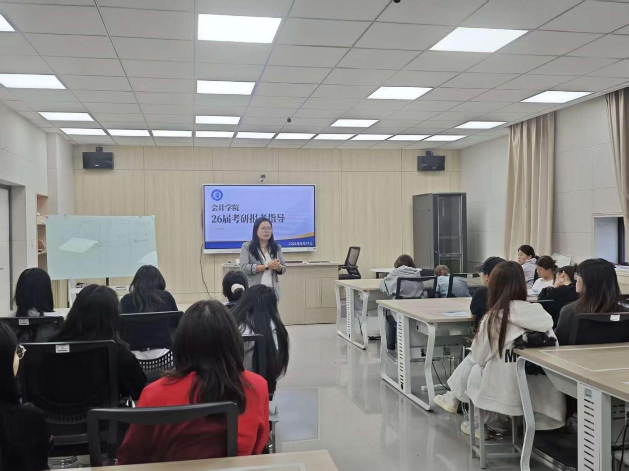 为进一步推进高质量就业,帮助考研学生了解更多考研咨询,掌握报考技巧,选择合适的报考院校。会计学院于9月17日在8330举办了2025届毕业生考研报考指导会。本次考研报考指导会由何利副院长主持,陈晓辉博士、薛媛博士、25级辅导员李若琳以及近百名2025届预考研同学参加本次指导会。