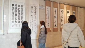 本次书法展展期一周,展出的作品均为河南省师生优秀的书法作品,涵盖楷书、行书、草书等多种书体,内容兼具经典诗词与时代寄语,既展现了中华书法的笔墨韵味,又传递出师生对传统文化的传承与创新。活动中,学院团员青年在作品前驻足观摩,互相交流对书法笔法、章法的理解,不少同学还结合服装专业特色,探讨传统书法美学与服饰设计的融合路径,在笔墨丹青中汲取创作灵感。