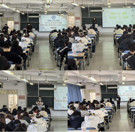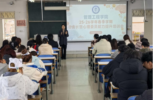 为深入落实学校《关于加强班长、寝室长队伍建设的实施意见》要求,扎实做好2025-2026学年春季学期各项工作,充分发挥宿舍长、心理委员作为基层学生干部的服务育人作用,3月20日,管理工程学院在7B301教室召开2025-2026学年春季学期宿舍长暨心理委员能力提升培训会。学院党委副书记曹冰、全体辅导员老师和全体宿舍长、心理委员,共计176人参加此次培训会,培训会由学院分团委书记张昊宇主持。